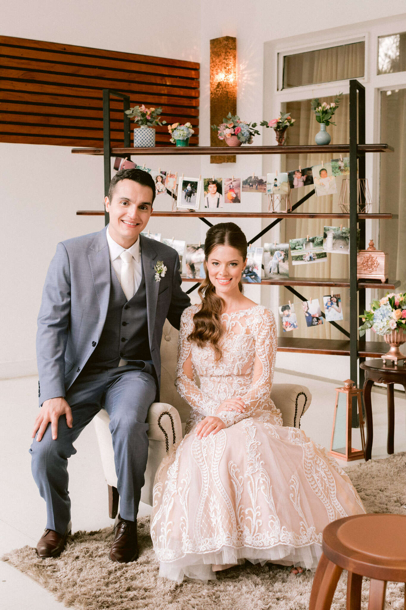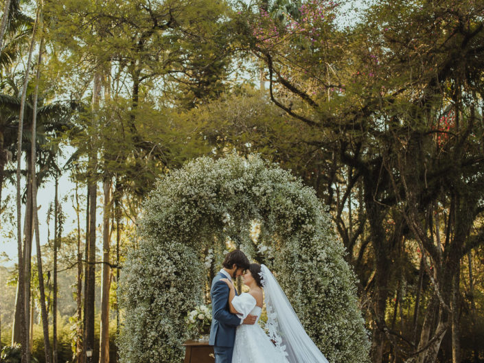 Para a decoração, feita pela Florearte Eventos, eles decidiram pelo branco e verde – bem tradicional – e que combina super bem com a fazenda também.