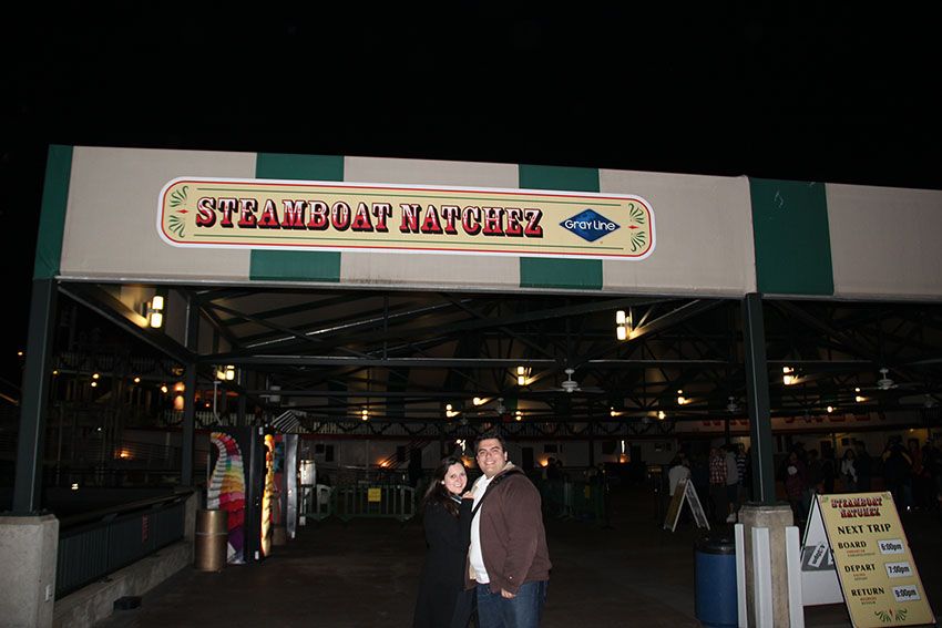 No dia seguinte viajamos para New Orleans. Eu, ele e minha mãe ( já que só a vejo 2x por ano, queria  ficar com ela o maior tempo possível). Amamos o lugar! A música, o clima de agito, a comida deliciosa, enfim tudo! No dia 27/12/11, passeamos o dia todo e a noite combinamos de jantar num barco dos anos 50 que percorria o Mississipi.  Minha mãe passou o dia todo falando que a gente tinha que ir arrumado para o barco, que ela esperava que o barco fosse lindo, que o jantar fosse realmente bom ( e eu nem desconfiava de nada). Embarcamos,  assistimos o barco partir (  o que dava uma  vista linda de New Orleans toda iluminada se afastando) e depois entramos no salão para o Jantar. O Salão era a coisa mais fofa, com as caixas de som em formato de coração , tapete vermelho e uma banda de jazz que era até vencedora de grammy ( nem preciso dizer que tocavam muito ne?). O Jantar foi ótimo, tinha de tudo!. Tomamos um vinho delicioso para acompanhar! E eu até reparei que o Mário nem comeu muito.