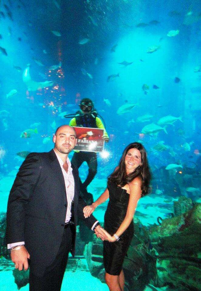Olha que fofo o pedido da Fabiana!!! Eles estavam jantando em Dubai, no hotel Ossiano, e de repente um mergulhador desce com A plaquinha!!